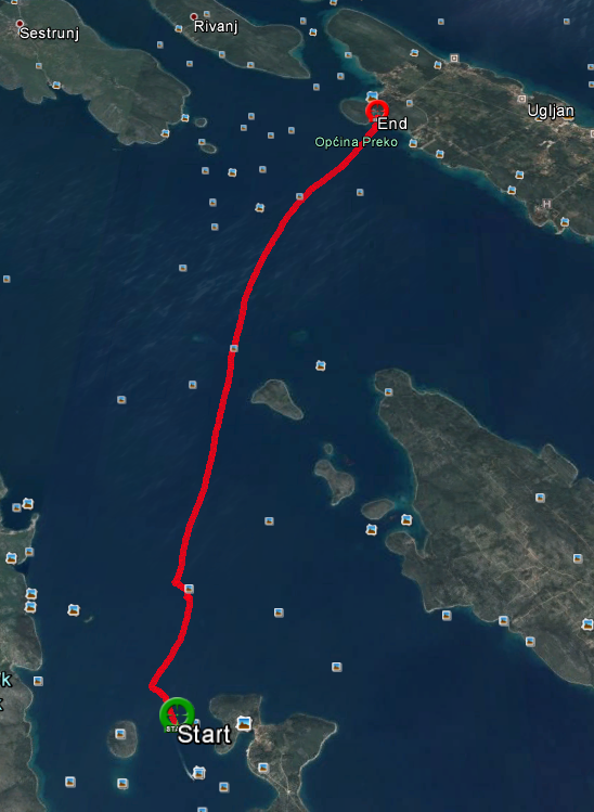 Ankerbucht – Sibenik Kreuzen unter Segel Richtung Kornaten/Zirje